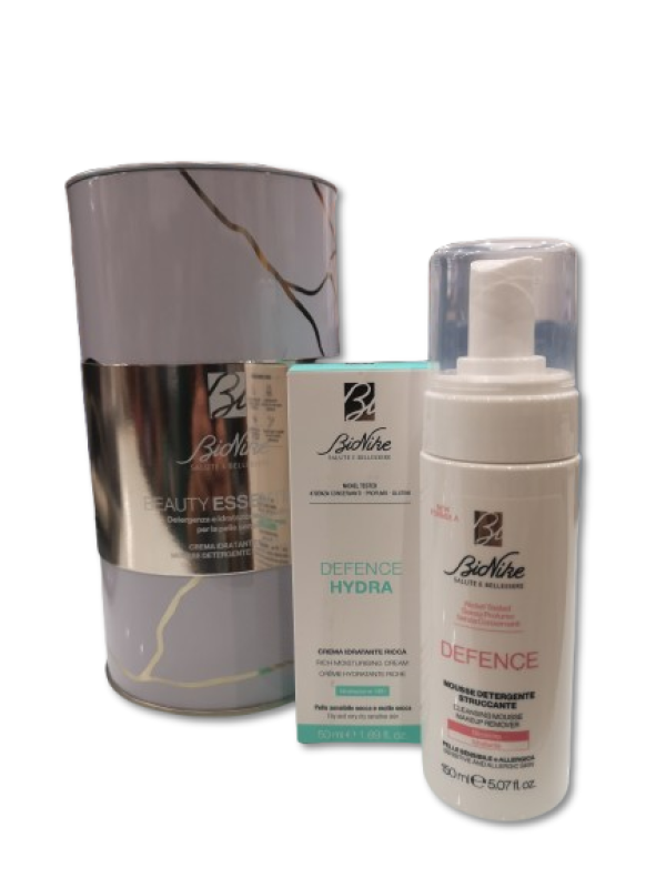 Descrizione Bionike Beauty Essentials Kit Defence Hydra Crema Idratante Ricca 50 Ml + Defence Mousse Detergente Stuccante 150 Ml