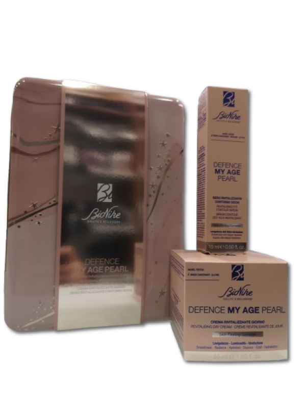 Descrizione Defence My Age Pearl Kit Natale 1 Crema Rivitalizzante Giorno 50 Ml + 1 Siero Rivitalizzante Contorno Occhi 15 Ml