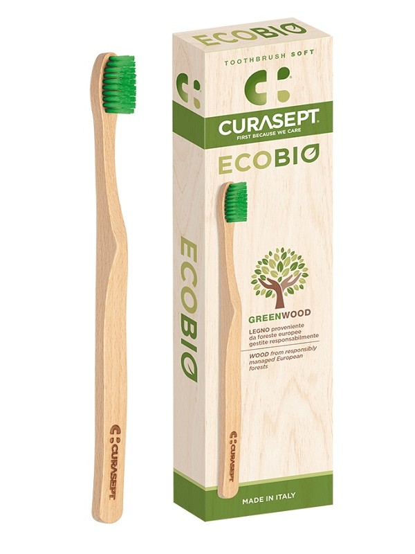 Spazzolino con manico ergonomico e morbido in legno. Con morbide setole, indicate per una pulizia delicata, atraumatica ed efficace.