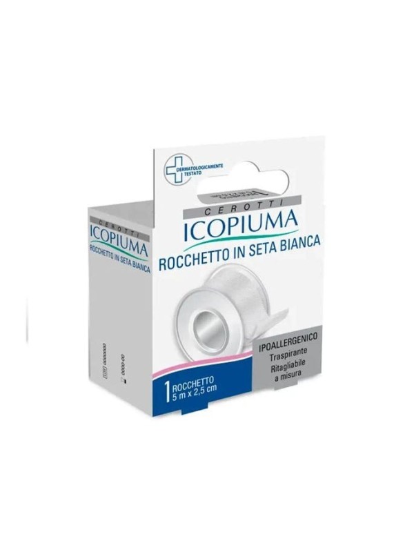 Descrizione Icopiuma Cerotto Rocchetto In Seta Bianca 2,5cmx5m
