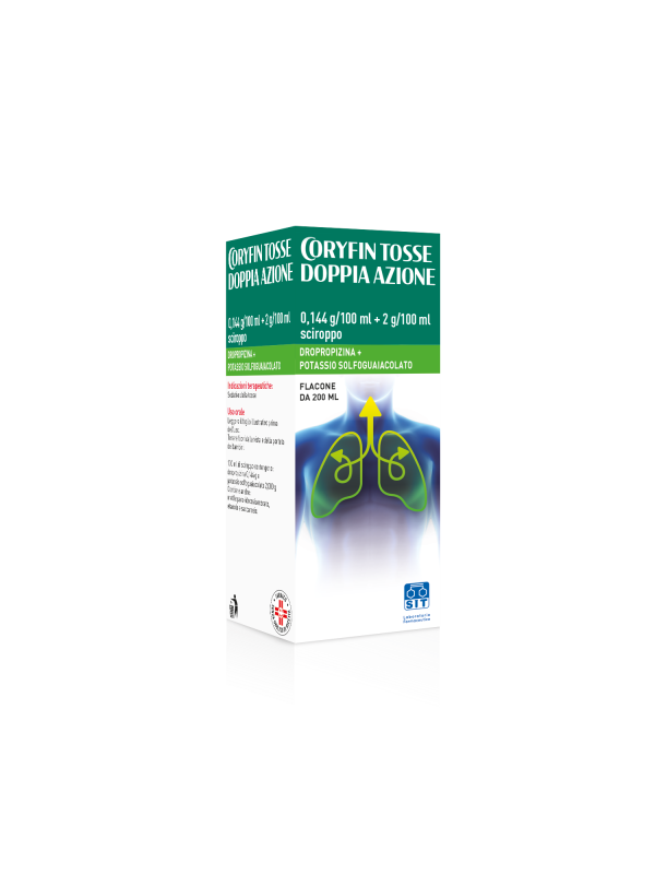 100 ml di sciroppo contengono: Dropropizina 0,144 g; potassio solfoguaiacolato 2 g. Eccipienti con effetti noti: metile para–idrossibenzoato, saccarosio, etanolo. Per l’elenco completo degli eccipienti, vedere paragrafo 6.1.