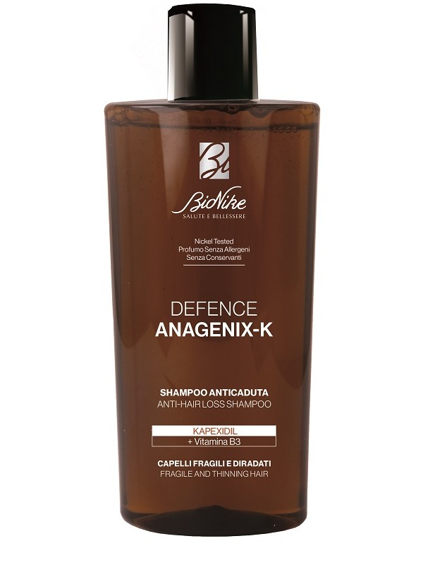 Trattamento anticaduta complementare che contribuisce al mantenimento di capelli più forti e vitali, favorendone le condizioni ottimali. Formulato con KAPEXIDIL sinergia di due principi attivi - DPO (Diaminopirimidina ossido) ed Esosomi da Curcuma - insieme a vitamina B3 e aminoacidi, è ideale per ristabilire l'equilibrio del cuoio capelluto, preparandolo al trattamento con DEFENCE ANAGENIX-K Lozione anticaduta.