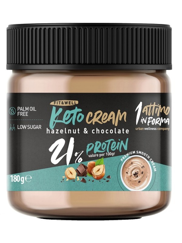 Crema proteica spalmabile keto con cioccolato e nocciola.