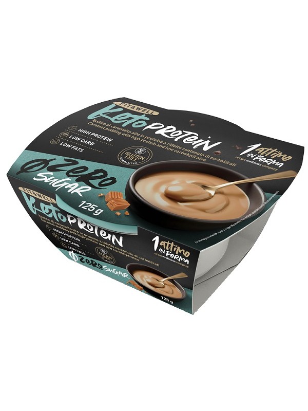Dessert pronto all'uso al gusto caramello. Con dolcificanti .