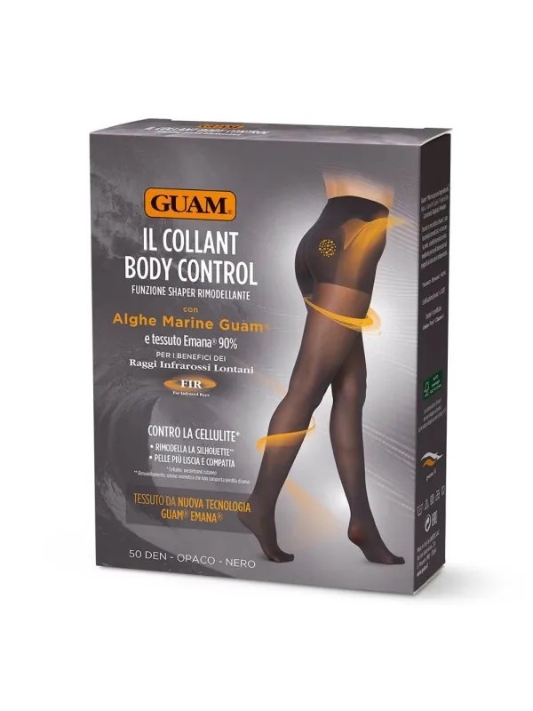 Collant che rimodellano la silhouette. Con alghe marine Guam microincapsulate a lento rilascio dei principi attivi e i benefici dei Raggi Infrarossi Lontani (F.I.R.).