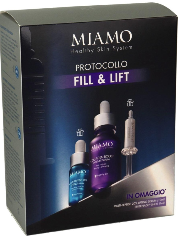 Miamo Protocollo Fill&lift - Collagen Boost 30 ml + Multi peptide 10 ml + Epigenage shot 1 ml - Ideale per rughe di tono ed espressione