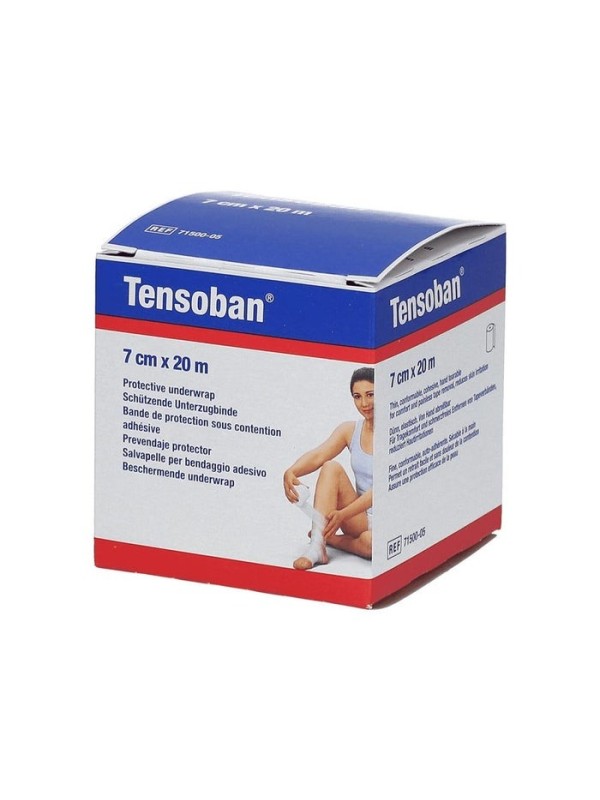 Tensoban di BSN è una benda salvapelle conformabile in gomma schiuma poliuretanica altamente porosa, autoaderente e bielastica. Indicata per il bendaggio preventivo e particolarmente adatta alle articolazioni più difficili, come ginocchio e gomito, viene utilizzata come salvapelle sotto al bendaggio elastico adesivo per facilitarne la rimozione. Consente una buona traspirazione.