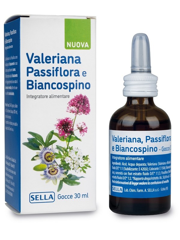 Alcol, acqua depurata, valeriana (Valeriana officinalis L.) rizoma e radice estratto fluido D/E* 1:1 [stabilizzante: E 420(ii); colorante: E 150d], biancospino [Crataegus oxyacantha (L.) Jacq. sommità con fiori estratto fluido D/E* 1:1,5, passiflora (Passiflora incarnata L.) rami fioriti estratto fluido D/E* 1:2.
