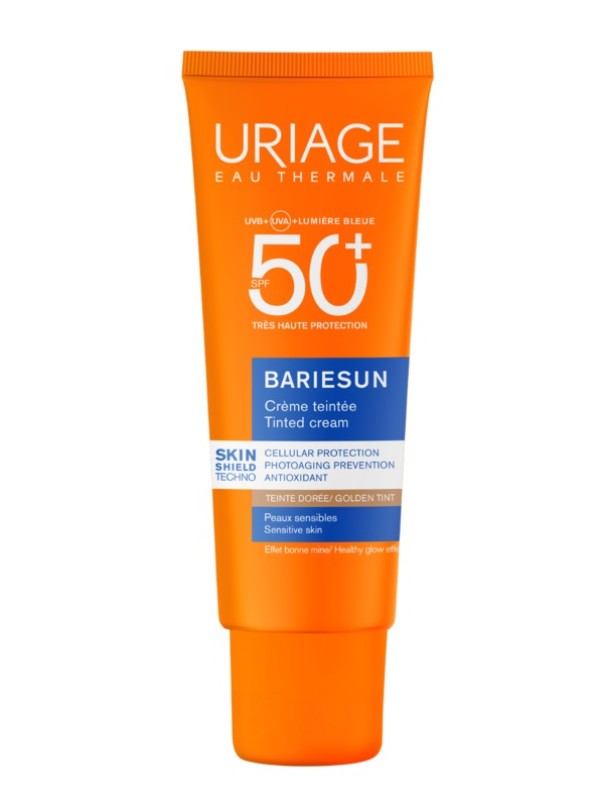 Crema colorata chiara SPF 50+. Protezione molto elevata UVB-UVA-luce blu. Aiuta a prevenire il fotoinvecchiamento causati da UV e luce visibile. Non appiccicosa. Non comedogena. Non pizzica gli occhi. Resistente all'acqua.