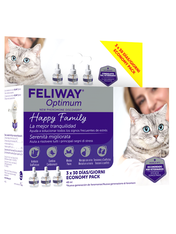 FELIWAY Optimum offre il meglio dei feromoni felini per una maggiore efficacia.